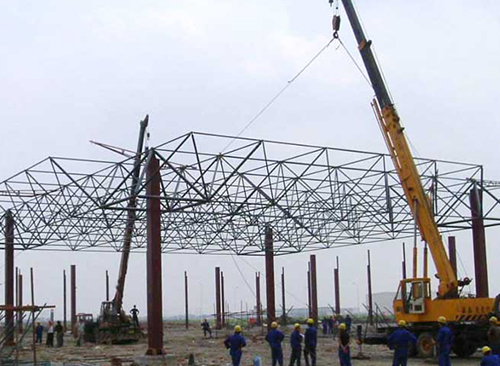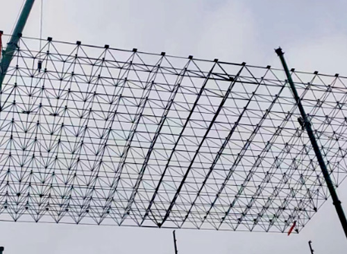 加氣站網架高空拼裝法:加氣站網架用高空拼裝法進行安裝,是先在設計位置處搭設拼裝支架,然后用起...